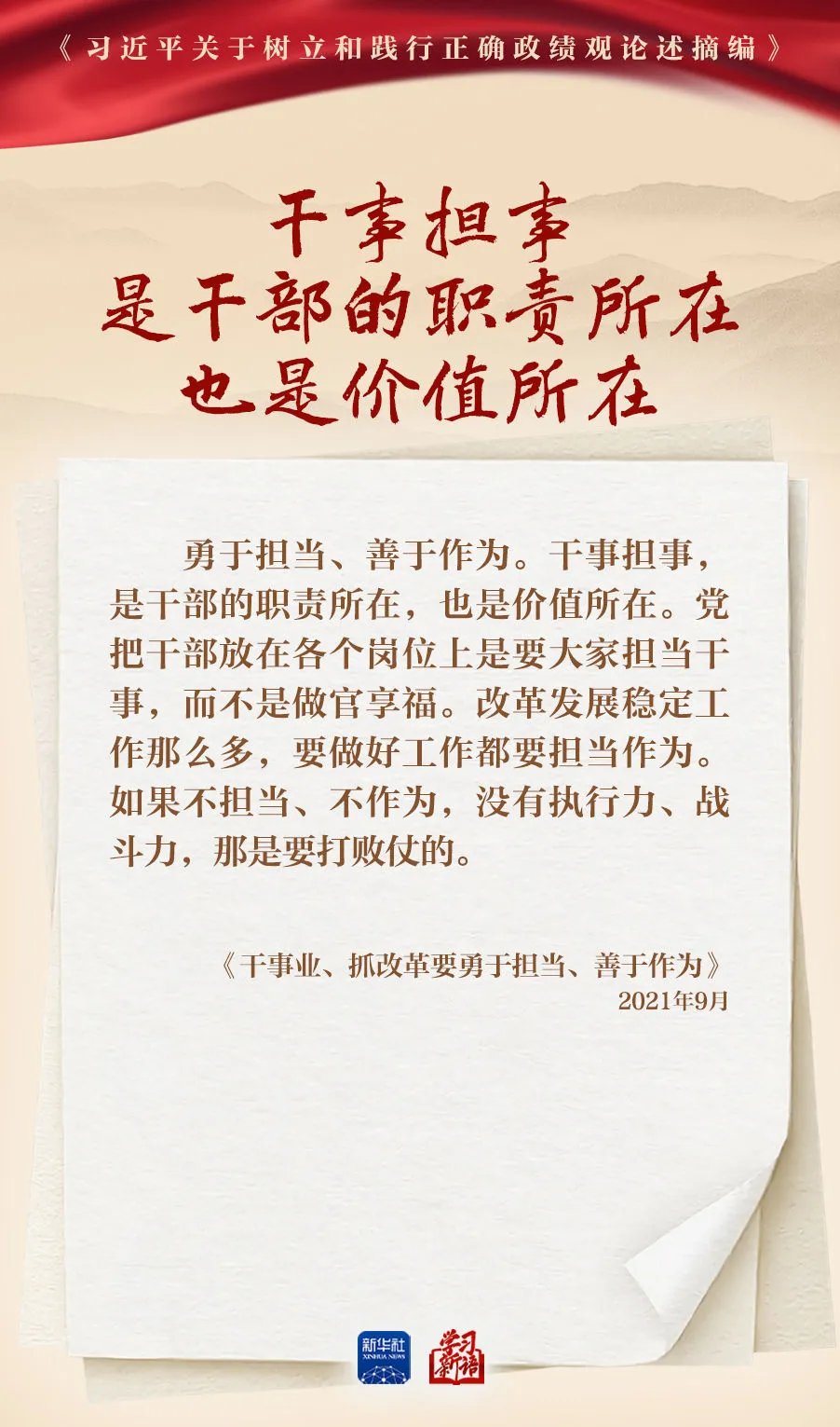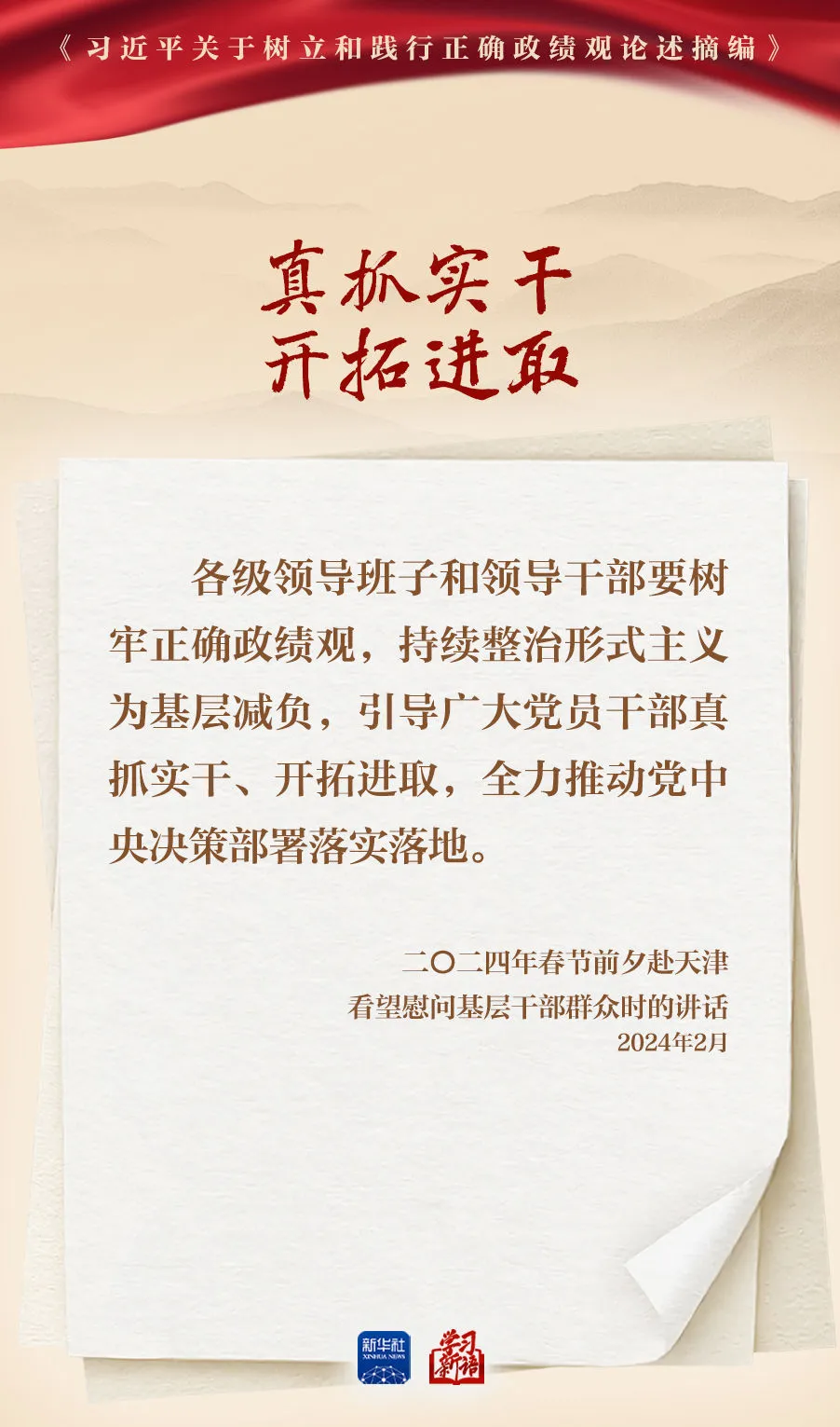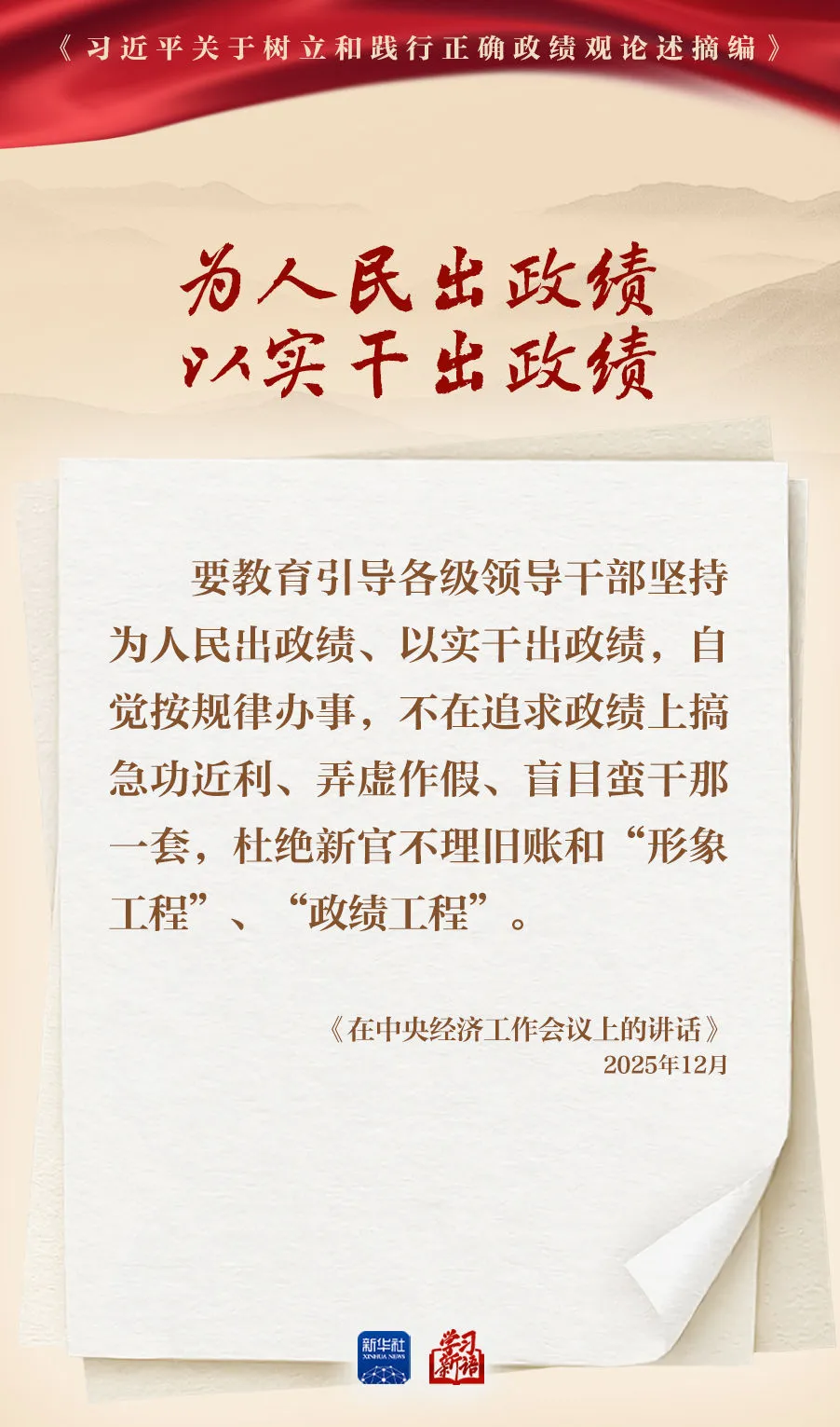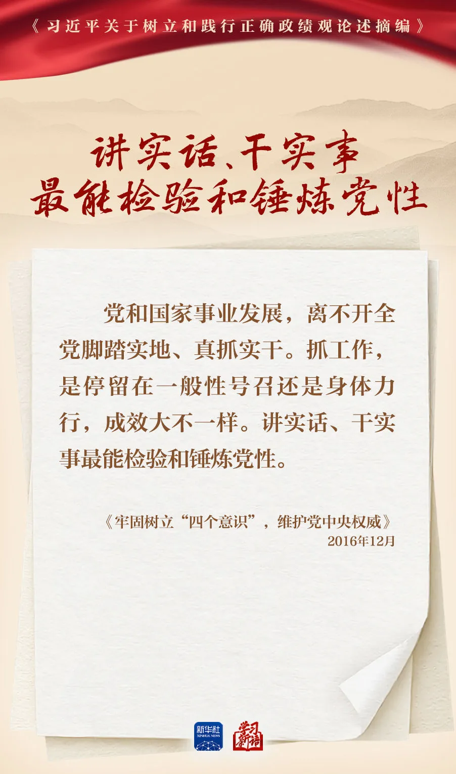 树立和践行正确政绩观学习教育正在全党开展。真抓实干,是共产党人的鲜明品格,也是成事之道。新华社选取《习近平关于树立和践行正确政绩观论述摘编》一书中的相关重要论述,一起学习领会。